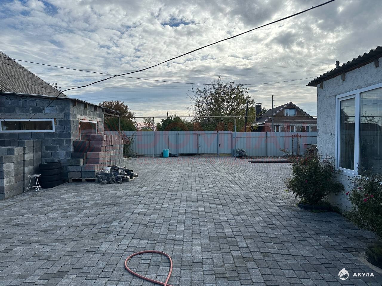 Двор вымощен плиткой