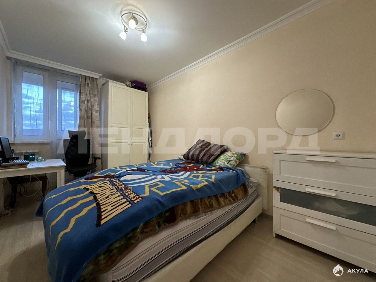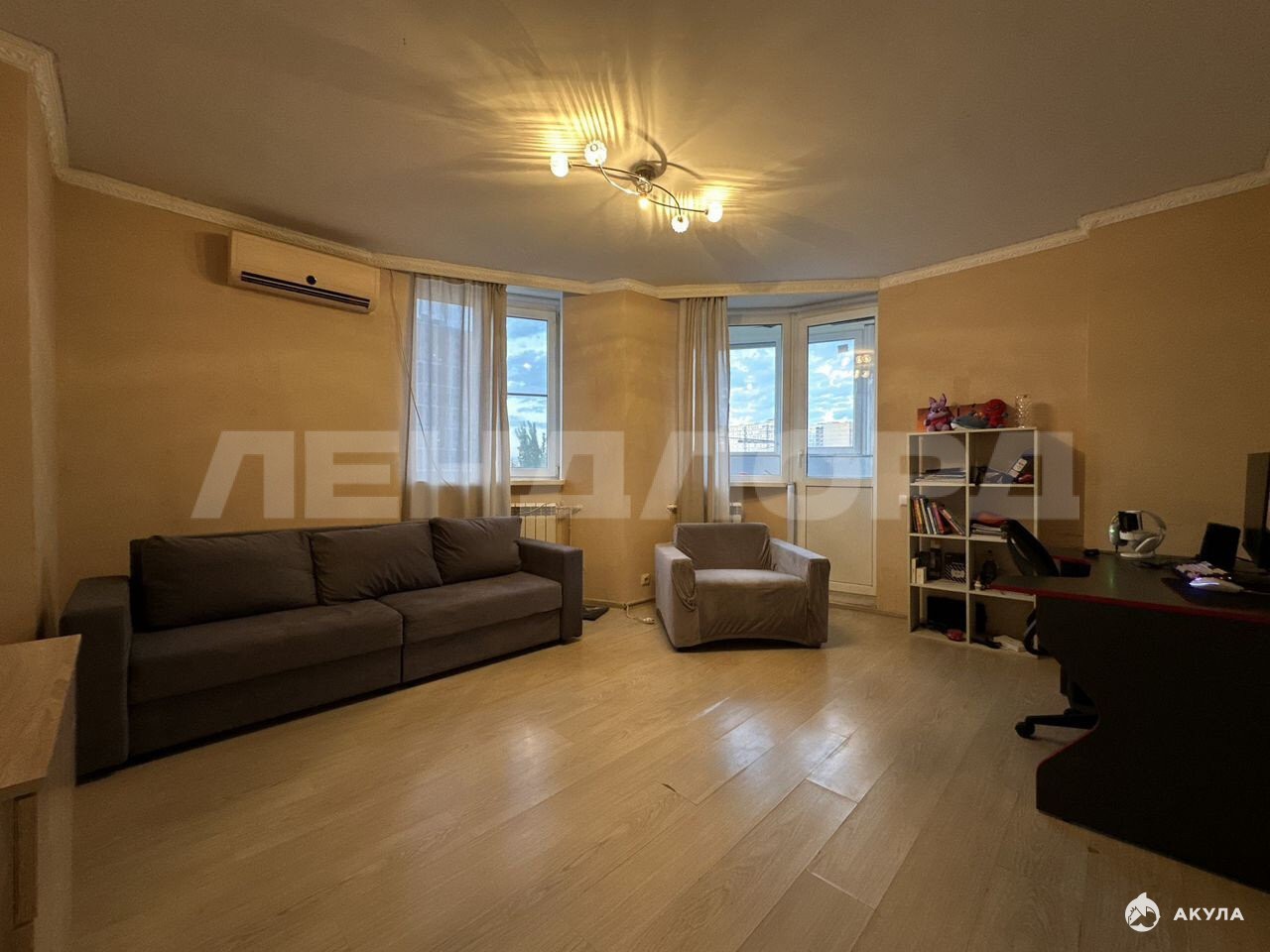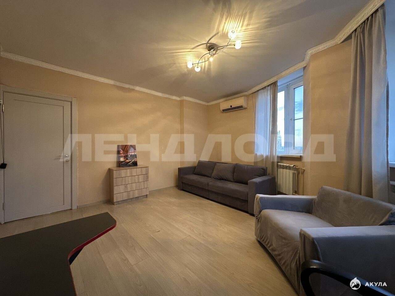 В кваpтирe при пpодаже остается кухонный гарнитур, встроенная бытовая техника. В гостиной комнате остается сплит-система и диван, в спальне мебели нет.