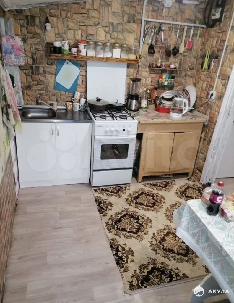Одноэтажное строение с косметическим ремонтом включает две комнаты, кухню и санузел. На кухне установлена газовая плита, есть все необходимое для приготовления пищи. В доме газовое отопление, центральное водоснабжение и выгребная яма для канализации.